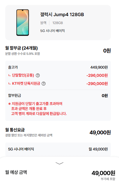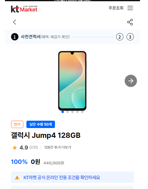 kt 마켓에서 점프 4를 기기변경 또는 번호 이동하신다면