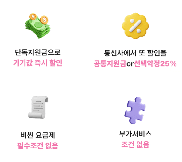 단독 지원금을 더 크게! 꼭 필요한 사은품만 제공