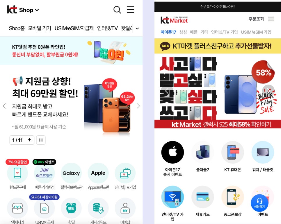 (좌) KT닷컴 / (우) KT마켓